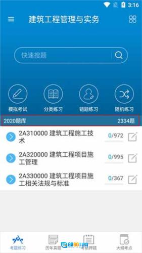 3、能够发现,《建筑工程管理与实务2020》题库包含2334道题目,涵盖2A310000建筑工程施工技术、2A320000建筑工程项目施工管理等内容。