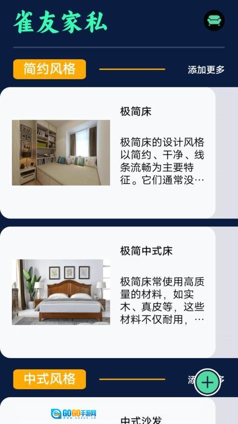 《沙发管》是一款聚焦于家具展示与管理的软件。它具备特色家具分类展示功能,包含北欧风、中式风等多样风格,同时还有新品家具推荐。用户能够浏览特色家具的图片,深入了解不同风格家具的搭配方式,而且还可以添加家具物品,并记录家具相关信息。该软件风格分类明晰,家具展示直观明了,管理功能十分实用,能够助力用户挑选到心仪的家具,同时方便管理自家家具,是家具选购与管理方面的实用工具。
