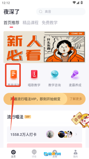 2. 在课程中心挑选发声技巧或者歌曲教学,依照视频教程开展呼吸与咬字方面的训练。