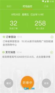 6、实时展示当天实际完成订单数、收入流水、出车时长等数据。