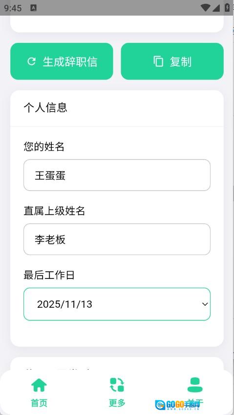1. 便捷的生成流程:仅需输入姓名、职位等基本资料以及离职原因,就能迅速生成契合职场标准的辞职信,无需具备专业写作能力。
