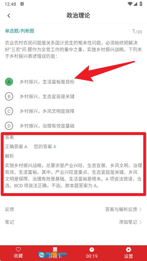 4、进入题目页面后,挑选答案并提交,随即就能查看正确答案及解析,助力你迅速理解知识点。