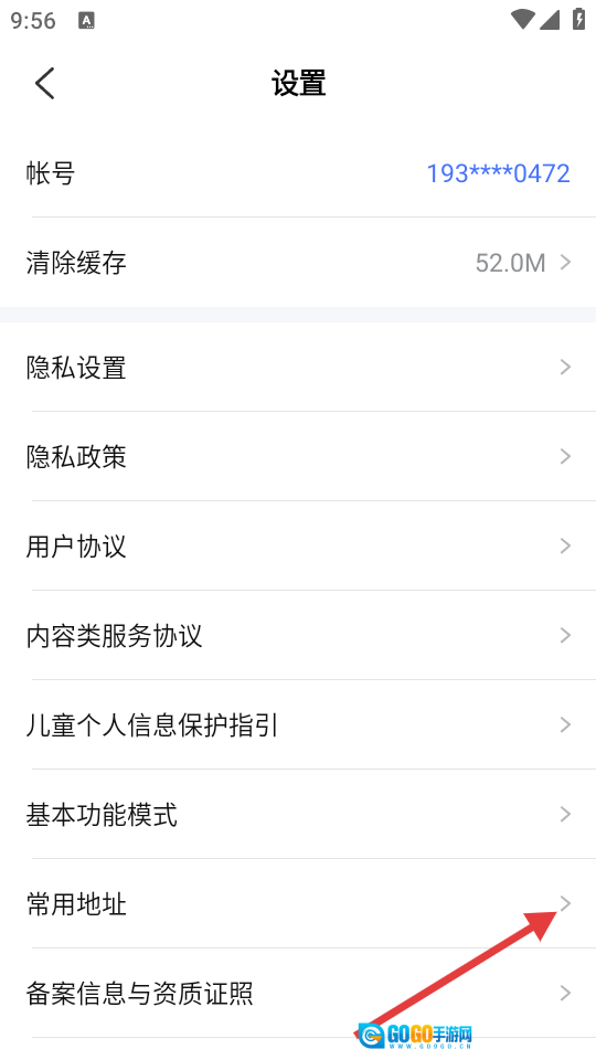 2. 在设置界面里,点击【常用地址】选项,从而进入我的收货地址页面。