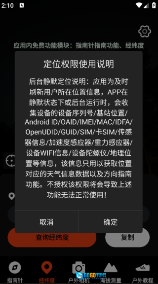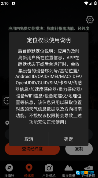 2. 具备经纬度定位功能,用户能够实时查看自身所在位置的经纬度坐标,从而更精准地知晓自己所处方位,有效避免迷路。
