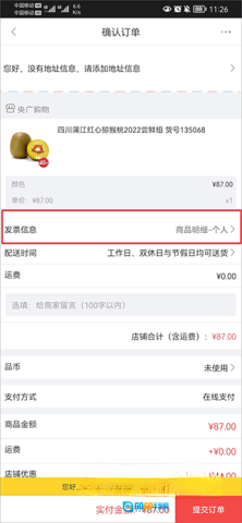 2. 来到订单确认页面,点击【发票信息】右侧的小箭头。