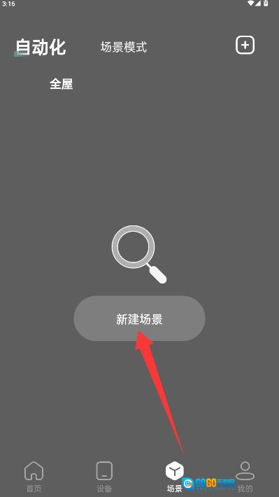 3、来到场景管理界面,点击新建场景功能按键,着手创建个性化智能场景设置。