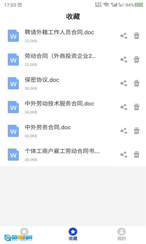 4、在精品合同页面,能够查看各类经过精心整理的合同范本,像出资证明书、劳动合同等文档。