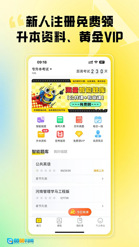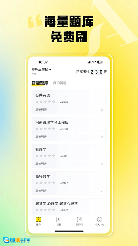 4. 智能题库与练习板块:这里拥有海量专升本练习题,涵盖随机练习、章节练习以及历年真题等丰富多样的练习模式。通过这些练习,助力用户扎实巩固知识点,有效提升应试能力。