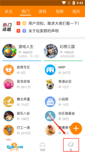 1、在本站安装冒泡网游后,打开进入其首页,接着点击“我”。