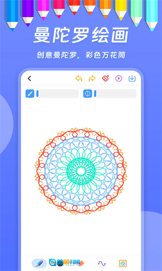 可以进行曼陀罗绘画,一键可以进行各种万花筒的绘画选择,快速画出各种彩色万花筒;