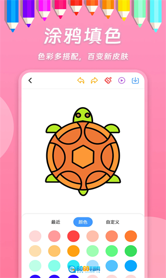 1、涂鸦填色,色彩多搭配,百变新皮肤,轻松在线绘画使用。