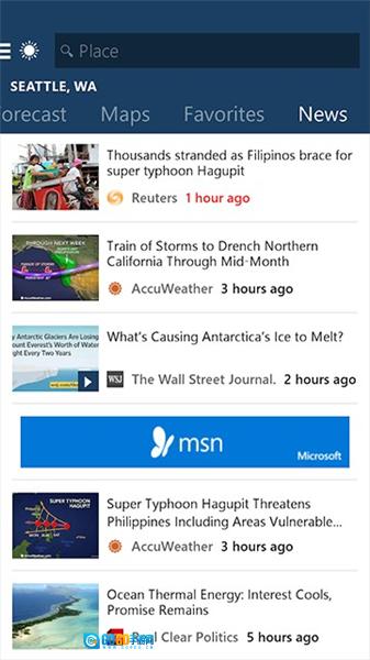MSN天气正版,乃是微软所推荐的一款天气预报软件。用户安装此软件后,便能接收微软收集并推送的天气预报信息,涵盖降水量、气温变化、空气清晰度等各类数据。借助这些信息,用户可为未来几日的出行提前做好相关安排,确保出行拥有完美的计划与行程。若您对此感兴趣,那就快来体验这款软件吧!