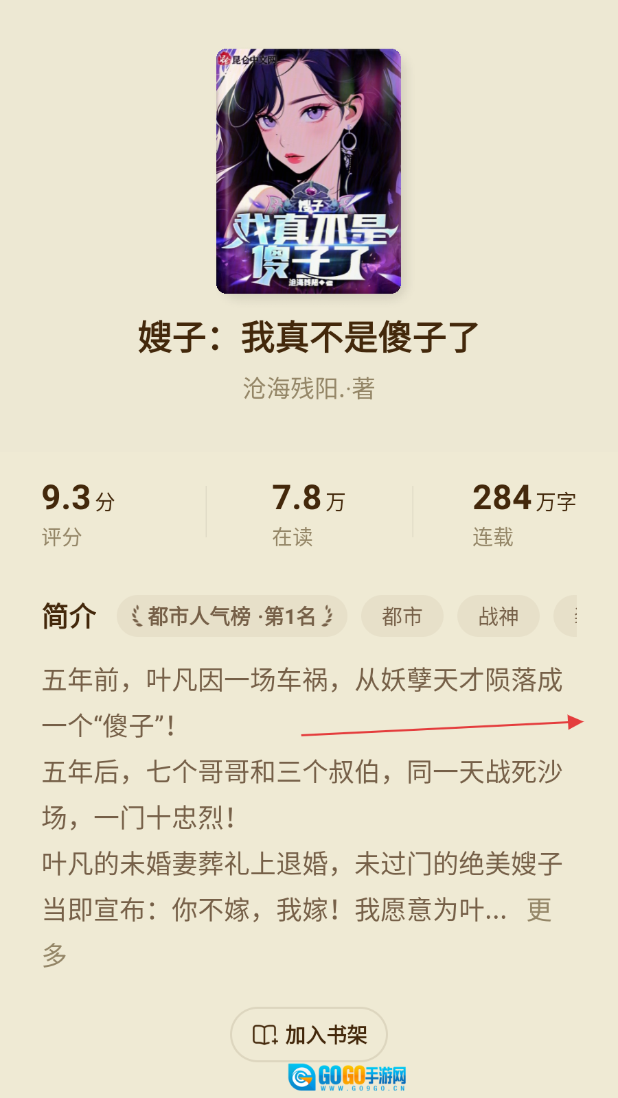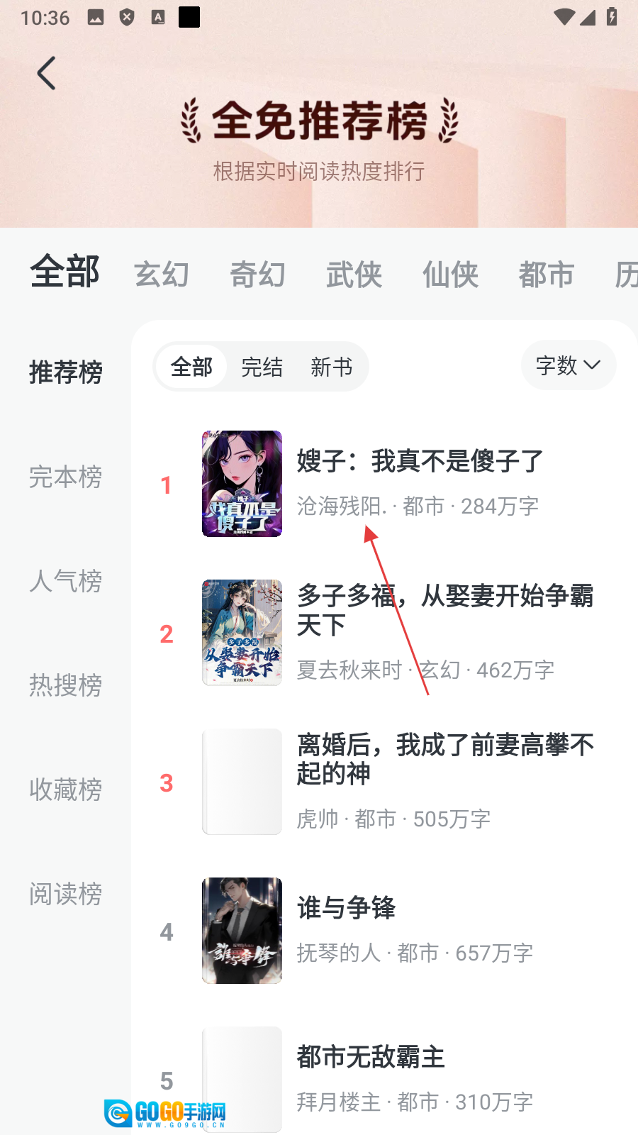2、在全免推荐榜页面【点击目标小说】,进入小说详情页面。