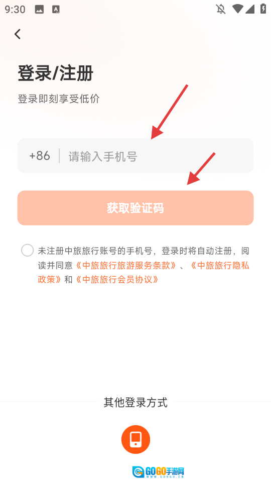 2. 轻点【登录/注册】选项,随即跳转至登录/注册页面。