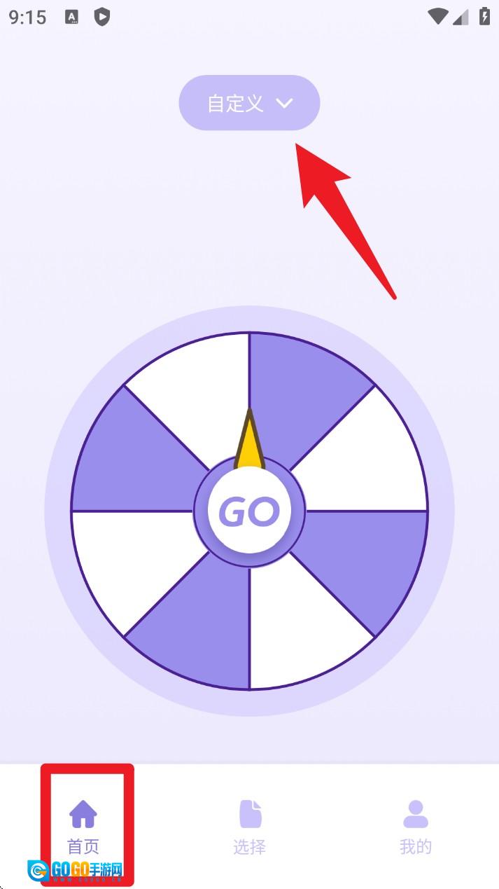 1首先来到首页,接着点击转盘上方的自定义按键,从其中挑选你想要使用的选项分组,随后便可以开启你的转盘选择之行。