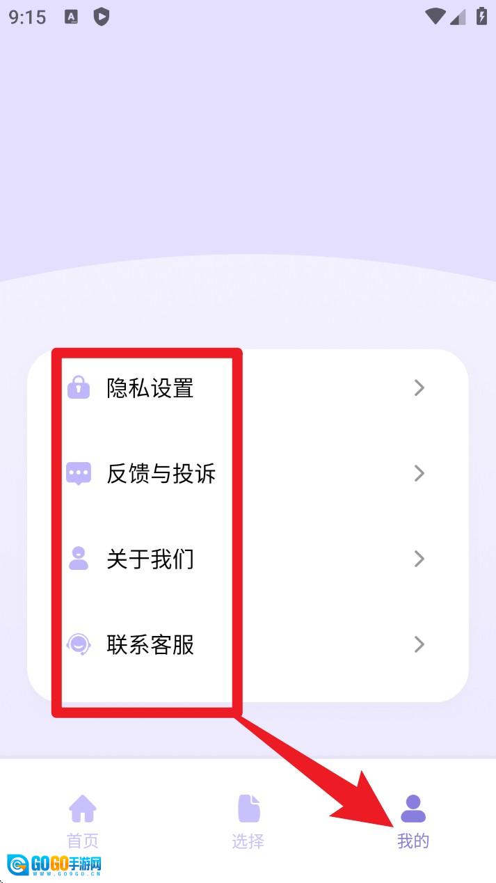 4. 点击底部导航栏的“我的”,即可进入用户中心页面,在该页面可进行隐私设置、反馈建议,或者联系客服处理问题。