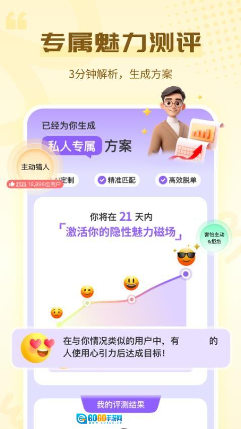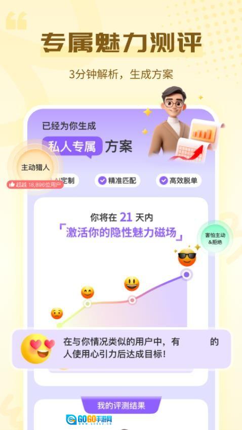 2、查看测评结果,知道自己的魅力磁场,并能获得专属魅力提升方案;