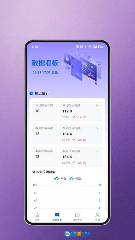 在数据看板中可以查看到实时统计的煤炭拉运数据信息,可对煤炭拉运数据进行查看了解。