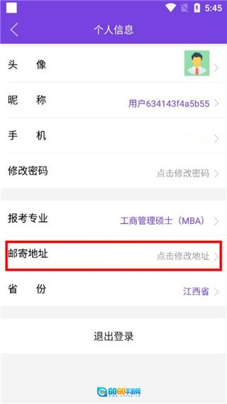 3、点击头像位置进入,能看到下方的邮寄地址,再次点击该地址即可进入。