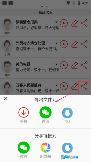 4、另外,对于录制的音频支持分享导出到qq、微信。