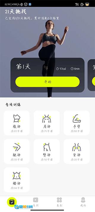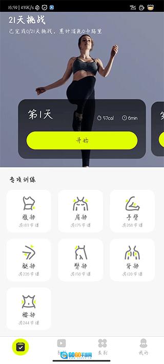 1、软件首页有各种专项训练,还有21天挑战计划。