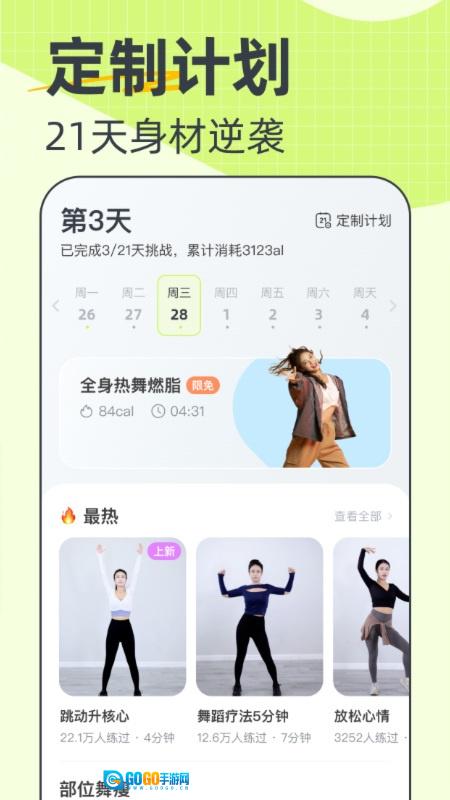 1、只需21天即可塑形瘦身,贴心私教计划,每天练的都不一样!