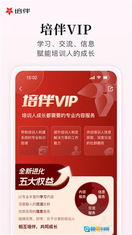 2025年培伴VIP全新进化,通过“学习服务、信息服务、交流服务”三方面,匹配六大权益帮助培训人构建系统的专业知识图谱,提升培训人制定解决方案的工作能力,与培训人一起共创培训人信息获取、深度交流的社群圈层。