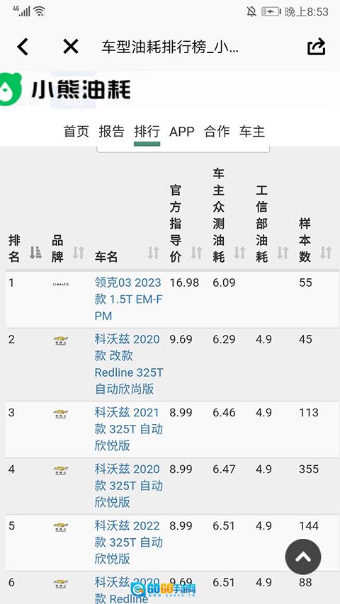 1. 油耗排行榜来啦!快来瞧瞧你的爱车油耗,在同款车型的车友中能占据第几名。
