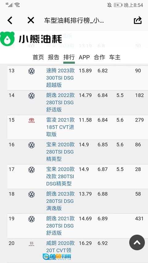 4、向下滑动界面,便能看到各辆车的油耗情况,这些车辆按油耗由低到高依次排列。