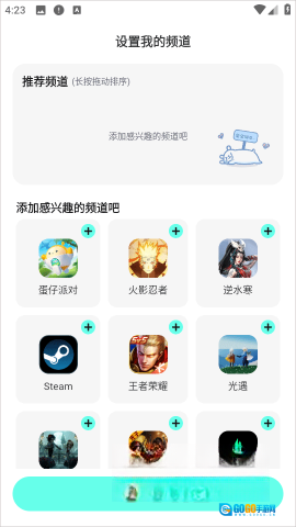 2. 在首次使用时,您能够对自己感兴趣的游戏频道进行自定义设置。