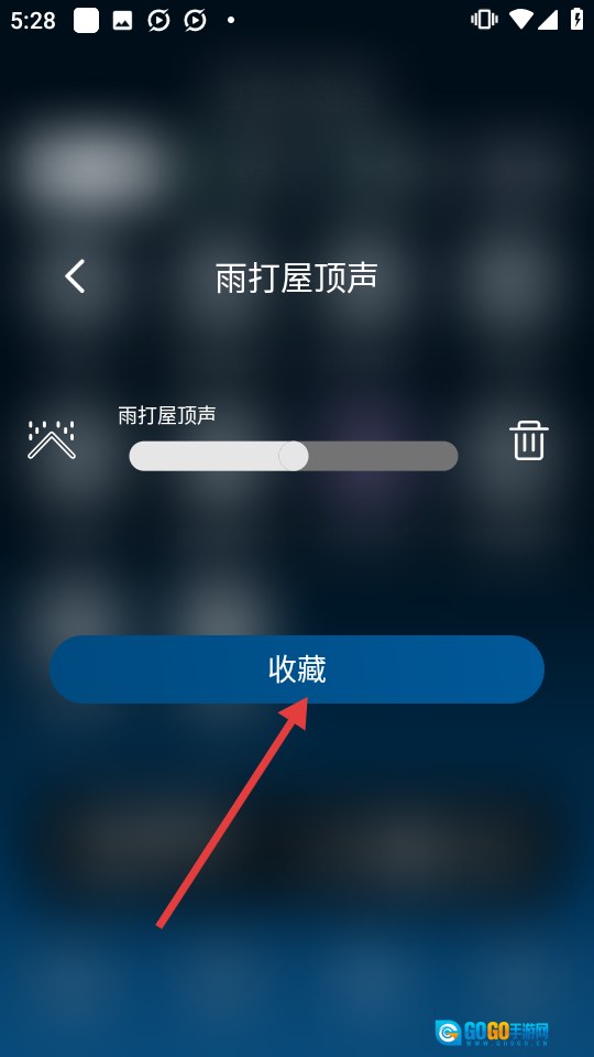 3、于“雨打屋顶声”界面,轻点【收藏】按钮,随即进入收藏混音流程。