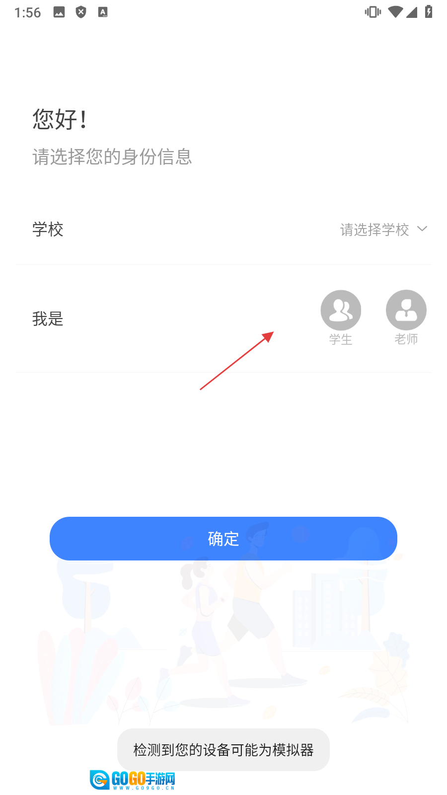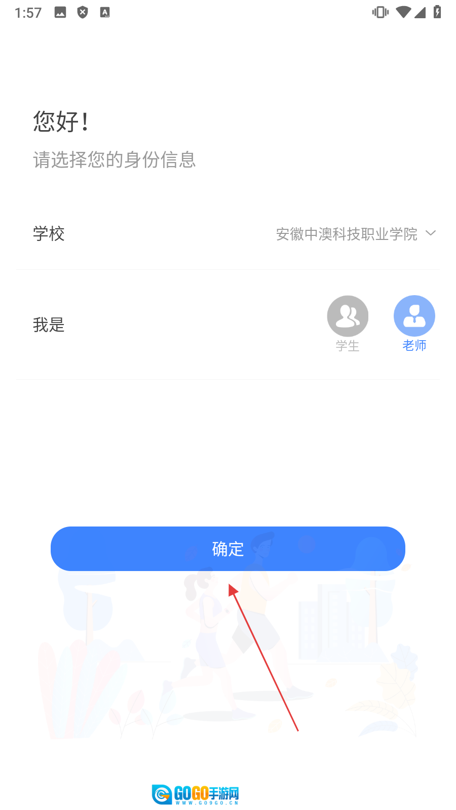 2. 选择好【学校和身份】,接着点击【确定】按钮,就能进入下一步的登录环节。