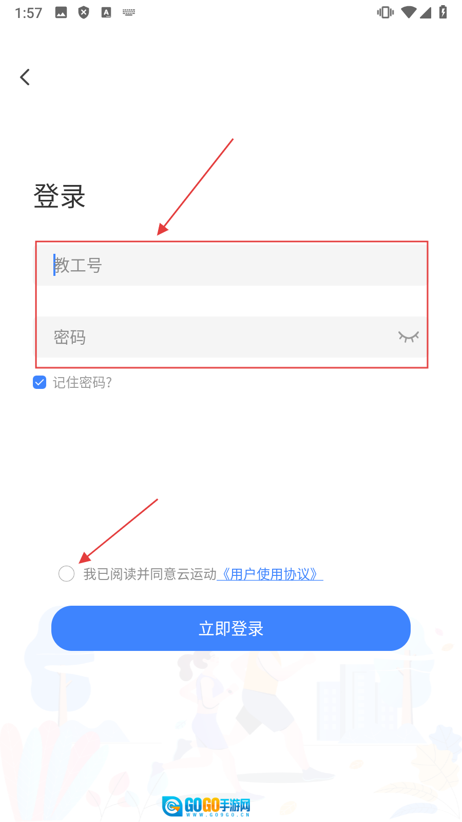 3、进行登录操作时,需要输入【教工号和密码】,同时勾选【同意协议】。