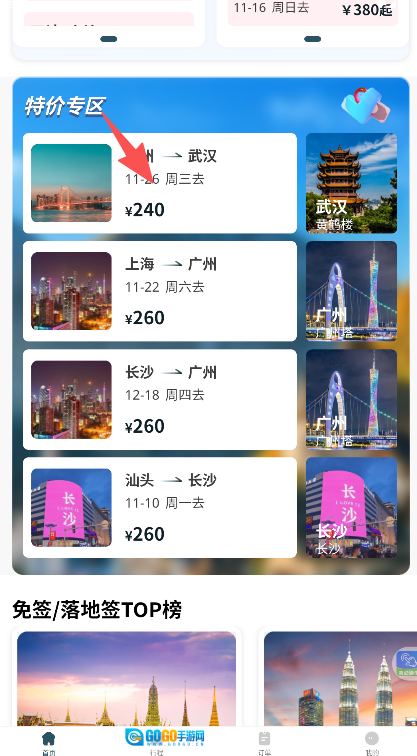 2、特价专区板块会直观呈现热门航线的优惠票价及日期,方便用户迅速发现并预订性价比高的航班。