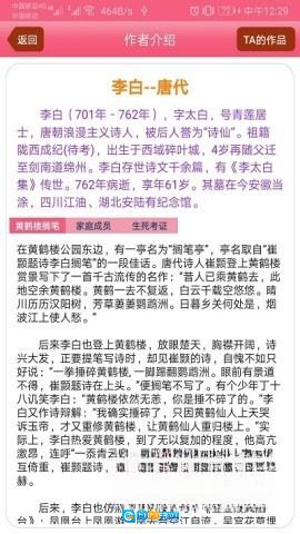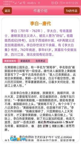 3、作者生平:对诗词作者的生平事迹以及创作背景展开介绍,以此增添学习过程中的趣味性。
