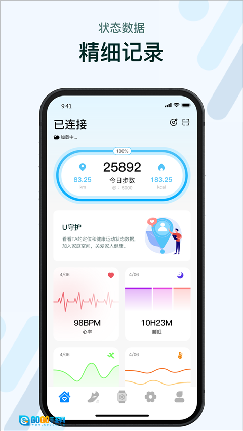 1、运动:为您记录运动数据,包括步数、距离、卡路里消耗等,并计算是否达成目标。