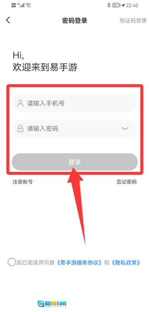 2. 在登录界面选择通过密码登录,输入手机号码与密码后完成验证。