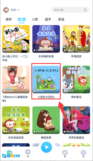 2. 在故事板块中挑选“小朋友大百科2”等相关内容,随后进入详情列表页面。