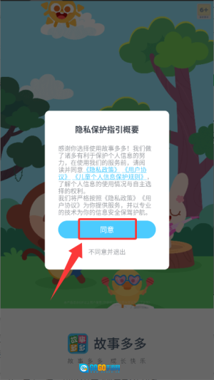 1. 于隐私保护指引概要窗口点击“同意”,便能进入故事多多应用。