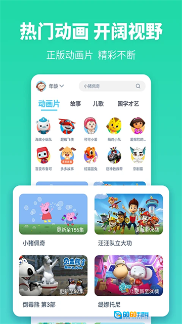 3、独家引入全球闻名的动画IP,像《汪汪队立大功》《小猪佩奇》等正版资源,通过结合本土化改编,构建起中西融合的启蒙教育体系。