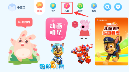 3、在主界面挑选“儿歌”板块,进而进入对应的音频内容页面。