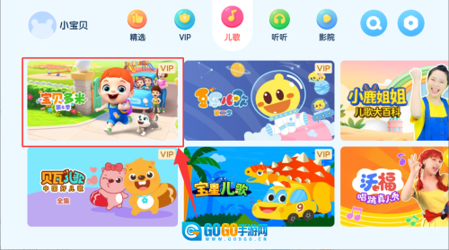 4、于儿歌页面挑选诸如“宝贝多米”之类的歌曲,随后开启播放进行收听。