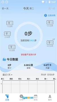 2、进入之后,我们能够清晰地看到自己行走的步数,以及详细的里程数和消耗的热量。