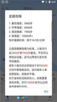 3、通过走路攻略,我们能够知晓运动的标准,清楚自身的运动量。