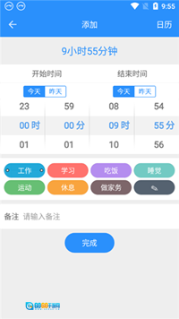 4、在计时功能里,我们能够添加在某个时间所进行的事情,像工作、学习、吃饭等状态,都能详细记录下来,以此了解自身的健康状态。