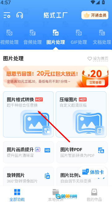 2. 于图片处理页面选取“图片格式转换”功能,着手准备开展图片格式转换操作。