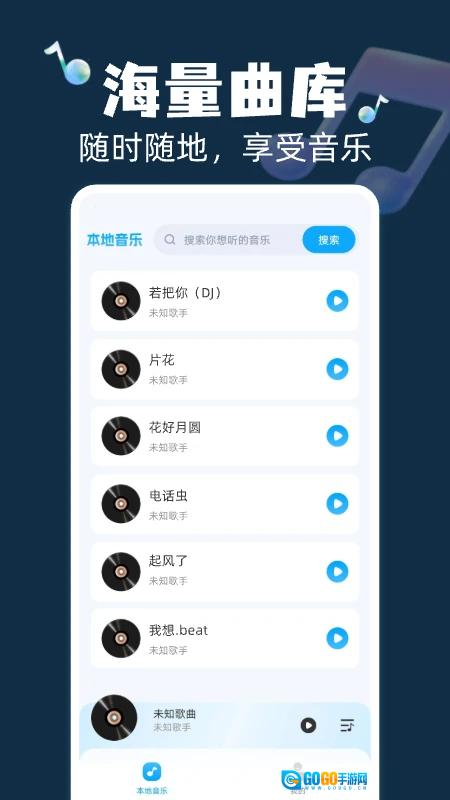 4、离线:用户能够在本地存储自己喜爱的歌曲,便于在无网络的环境下收听。