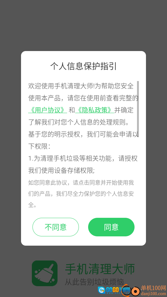 1、首先打开应用,阅读完“个人信息保护指引”,然后点击“同意”按钮进入。