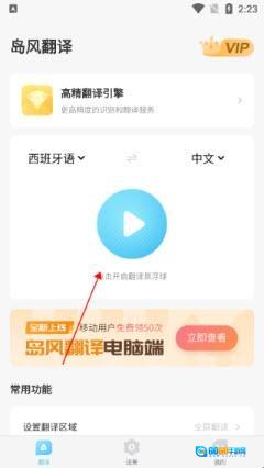 2. 于翻译页面,完成语言设置后,点击【开启翻译悬浮球】。
