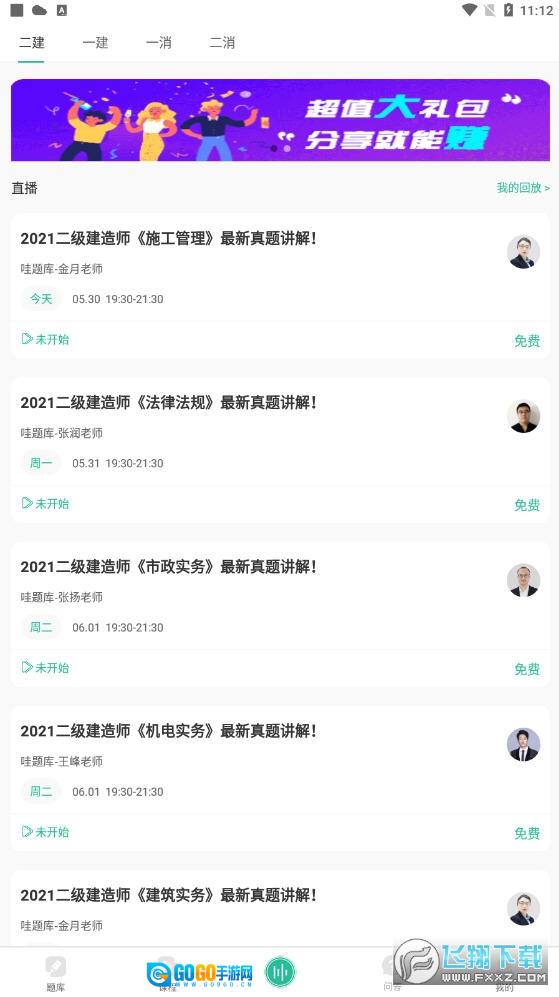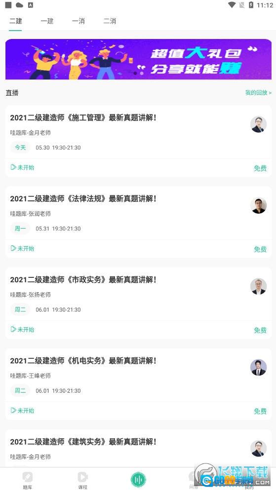 哇题库是一款职业技能考试类的学习软件,针对了消防师还有建造师的考试模式,在哇题库上还能查看各种优质的直播课程,专业的老师在线讲解授课,也提供了很多的题库内容在线刷题,快来试试吧!